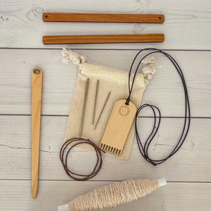 This is everything you need for the course, Weave Your Way - Moon and Mountains - except the loom and steel rod.